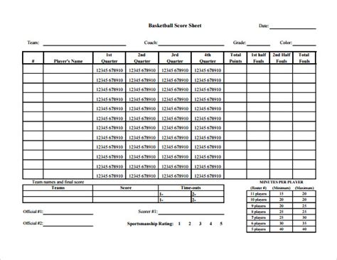 8 Free Sample Basketball Score Sheet Samples Printable Samples